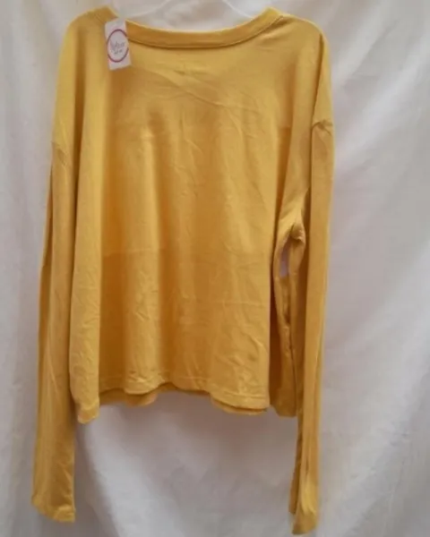 Blusa NUEVA manga larga. Hermosa blusa corta manga larga talla L nueva, cuello redondo color amarillo mostasa con blanco en frente