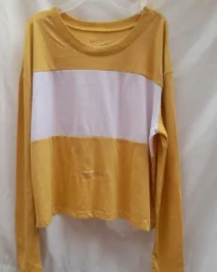 Hermosa blusa corta manga larga talla L nueva, cuello redondo color amarillo mostasa con blanco en frente