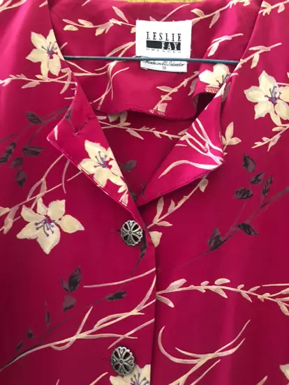 Linda blusa o saquito ligero con manga corta . Medidas hombro 45, axila 60 y largo 59 aproximadamente. La tela es ligera y tiene botones muy coquetos