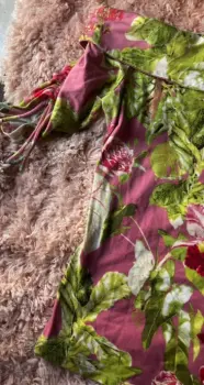 Es talla M , trae como listón en el costado de las mangas como para ajustar. , la tela trae strech