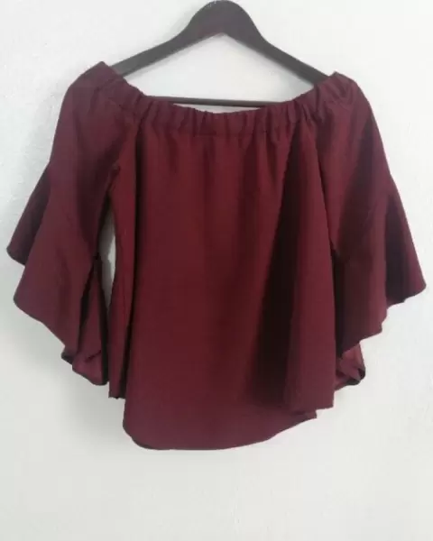 Blusa off shoulder manga con campana. Súper linda.Nueva sin etiqueta. Sin detalles. En perfectas condiciones.Color vino y/o rojo quemado. Talla 8 americano, equivale a talla M.De axila a axila: 46 cmLargo: 50 cm