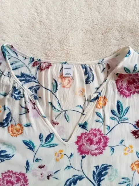 Blusa Old Navy, talla S, floreado, de manga larga y cuello V.100% rayón.