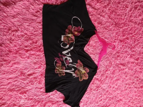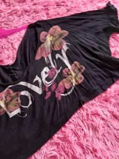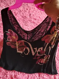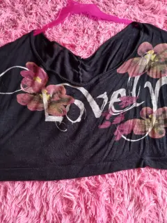 Blusa ombliguera. Blusa negra amplia tallav3x ideal para llevar encima de otra, o de vestido, es color negro letras leve y flores en color rosa