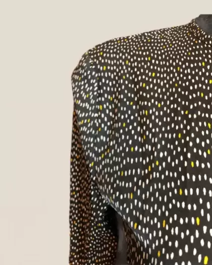Esta Blusita está padrísima, creo que no habría mejor descripción, es negra con óvalos en blanco y amarillo 🤗
