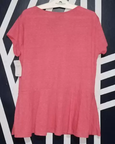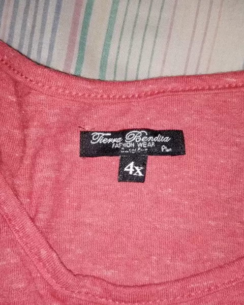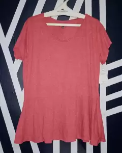 Blusa peplum plus size, la etiqueta marca 4XL pero viene un poco reducida, podría asegurar que es talla 2xl o 3xl, color rojo jaspe (casi coral). Tela ligera y fresca, acentúa linda figura.