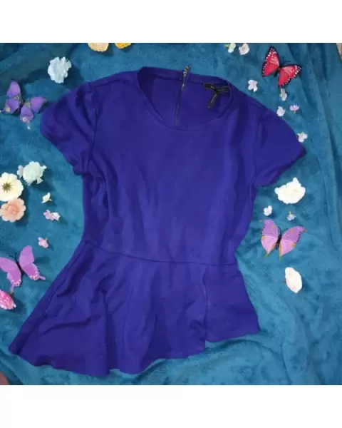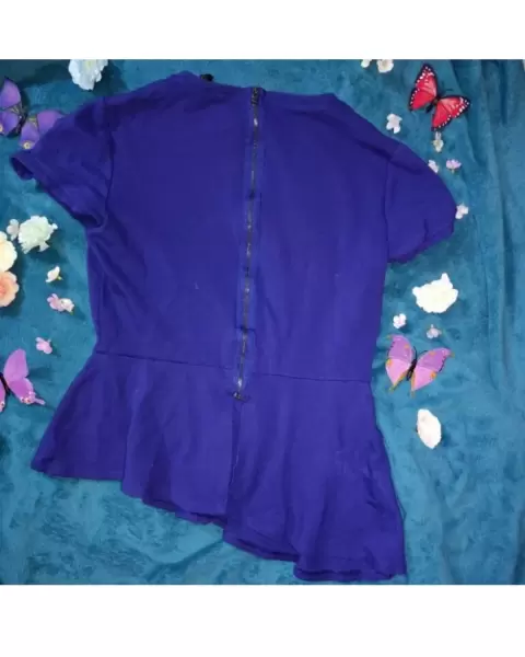 Blusa peplum asimétrica. Linda Blusa peplum asimétrica en color morada o uva, talla mediana, 65 porciento rayón, 30 nylon y 5 spandex.Usada en 3 ocasiones.