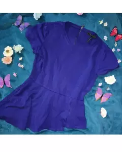 Linda Blusa peplum asimétrica en color morada o uva, talla mediana, 65 porciento rayón, 30 nylon y 5 spandex.Usada en 3 ocasiones.