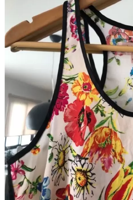 Linda blusa de tirantes con flores , tiene en los lados línea negra y luce genial . 65 largo 41 pecho