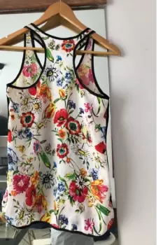 Blusa PHILOSOPHY. Linda blusa de tirantes con flores , tiene en los lados línea negra y luce genial . 65 largo 41 pecho