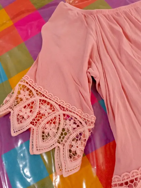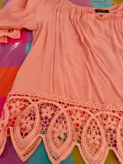 Blusa con Hermoso Encaje en color coralTalla 4xCuello de hombros caídosUsado sólo una vez