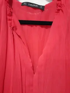 Blusa de poliéster plisada cuello v manga larga roja, talla 26 con forro interior