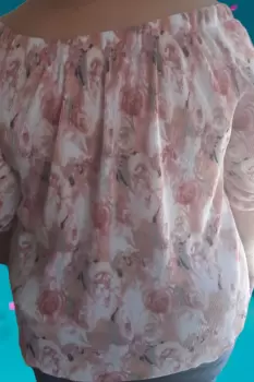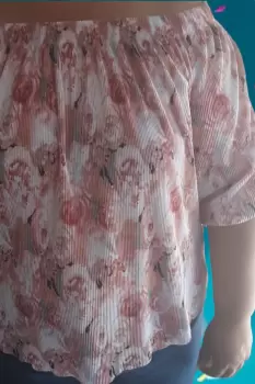 Blusa plisada con Manga 3/4. Blusa plisada con Manga 3/4 y estampado de Rosa's Color rosa y estampado de Rosa'sMarca jennis y marlisTalla XLIdeal Para una fiesta