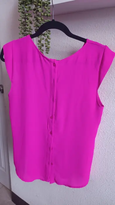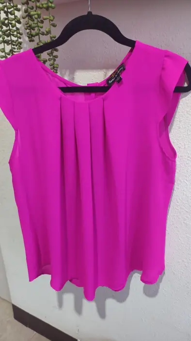 Blusa Plisada Rosa Mexicano. Hermosa blusa con plisado en frente y lindos botones en la parte de atrás, tiene todos los botones, es talla XL, tela delgada, no estira, lindo corte redondo, las medidas son:Hombro. 35 cmLargo.64 cmAxila. 52 cmAncho.50 cm