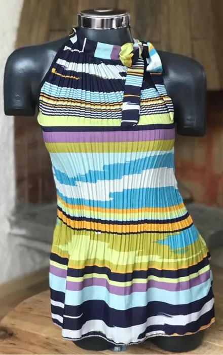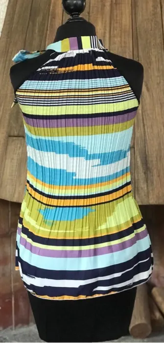Blusa plisada seda poliéster. Padrísima blusa larga de colores será poliéster talla chica casi nueva sólo se puso una vez excelente calidad y precio