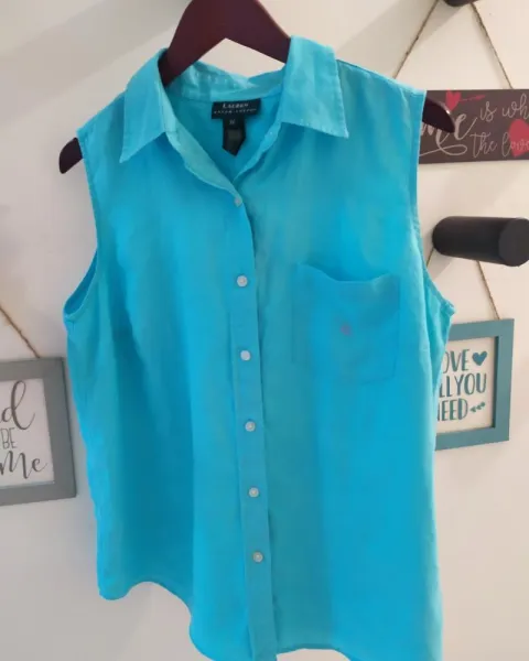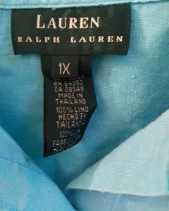 Aprovecha súper precio en blusa fresca, azul pastel, de gran calidad marca Ralph Lauren, es extra grande de lino esta tela es súper fresca tú sabes. Mide axila a axila 60 cms, largo 65 cms