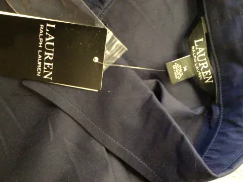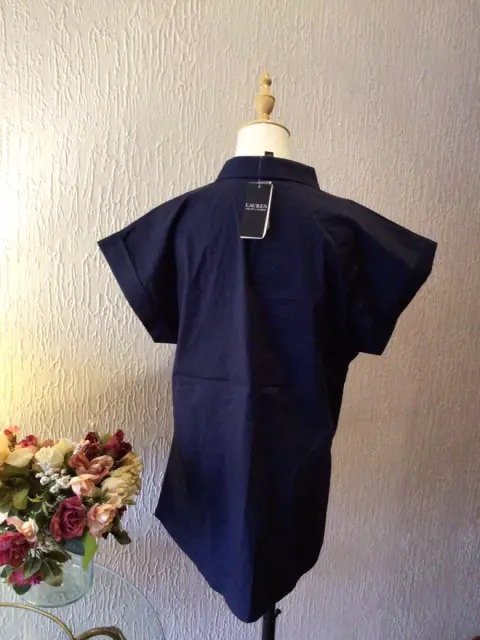 BLUSA RALPH LAUREN TALLA 14. BLUSA MARCA RALPH LAUREN, MANGA CORTA COLOR AZUL MARINO CON BOTONES AL FRENTE Y PLIEGUES QUE HACEN QUE ORME ESPECTACULAR, CON ETIQUETA TALLA 14