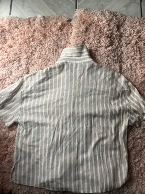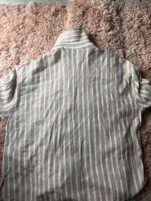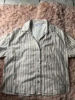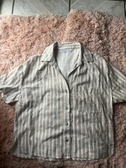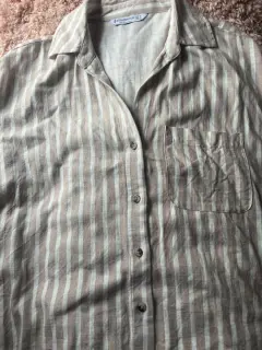 Blusa rayada stradivarius. Es talla M , mide 48 cm de largo 49de ancho es rayada en color es como blanco /beige y rayas café clarito , la tela e tipo lino