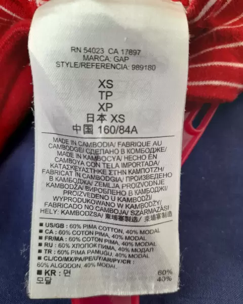 Blusa Gap manga larga, roja con rayas blancas, cuello ojal, manga larga, talla XS, sin detalles y en perfecto estado.
