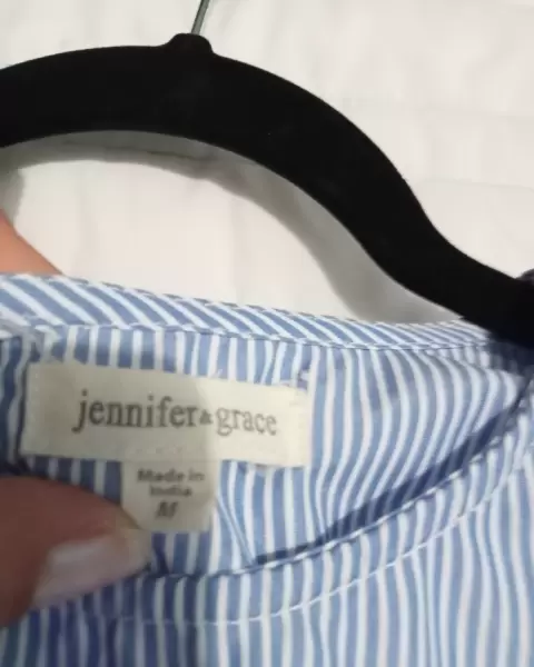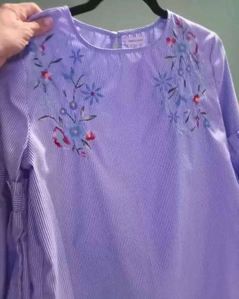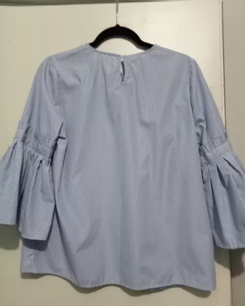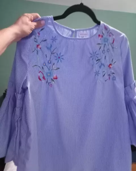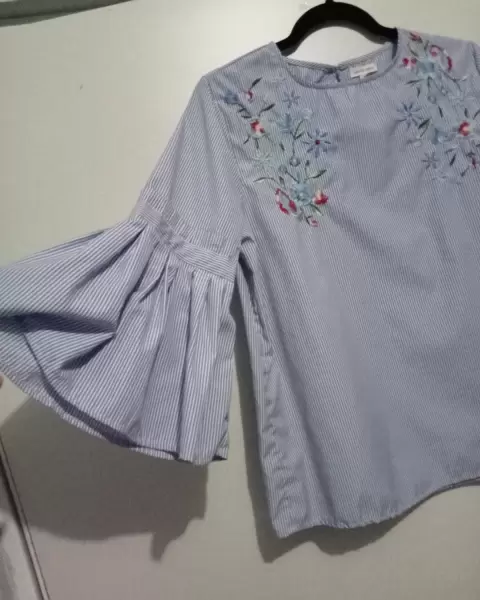 Linda blusa de rayas azul celeste con blanco bordada como nueva con lindas mangas acampanadas luce hermosa....