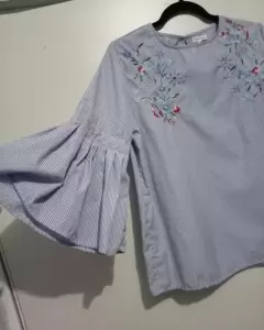 Blusa rayas con bordado. Linda blusa de rayas azul celeste con blanco bordada como nueva con lindas mangas acampanadas luce hermosa....