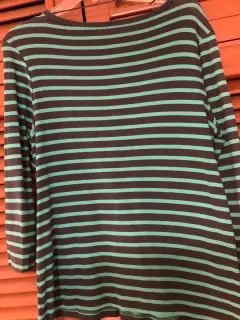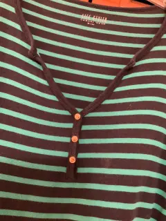 Blusa rayas de verano. Cómoda blusa, manga 3/4Azul marino con verde, botones al frente de adorno,100% algodón.