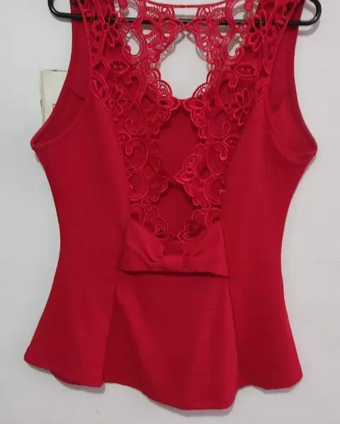 Blusa roja. Blusa roja con espalda de encaje fresca, cómoda casual