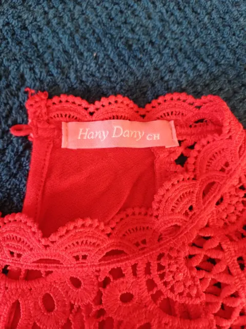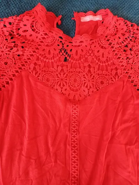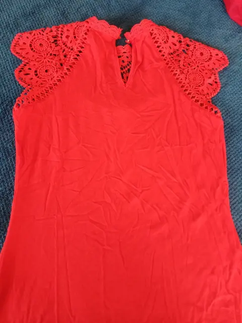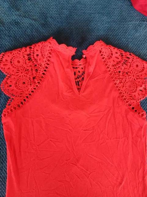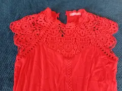 Blusa roja con encaje en la parte del pecho. Blusa roja con encaje al frente sin manga, tela algodon , talla chica