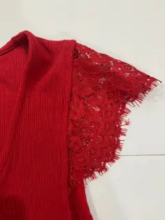 Blusa roja con encaje en las mangas
