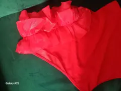 Blusa roja escote diagonal. Blusa roja de tela strech queda entallada al cuerpo, con un detalle de gaza en el hombro que la hace más elegante y llamativa es talla S pero por el tipo de tela llega hasta M sin problema