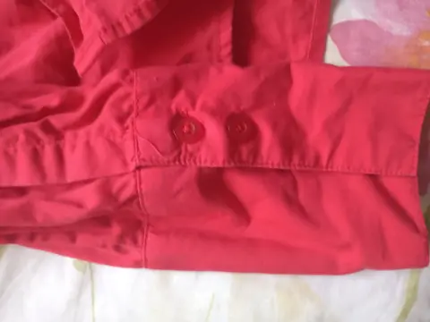 Blusa roja manga larga. Elegante blusa manga larga color rojo talla grande con doble botón en puño y detalle de abertura
