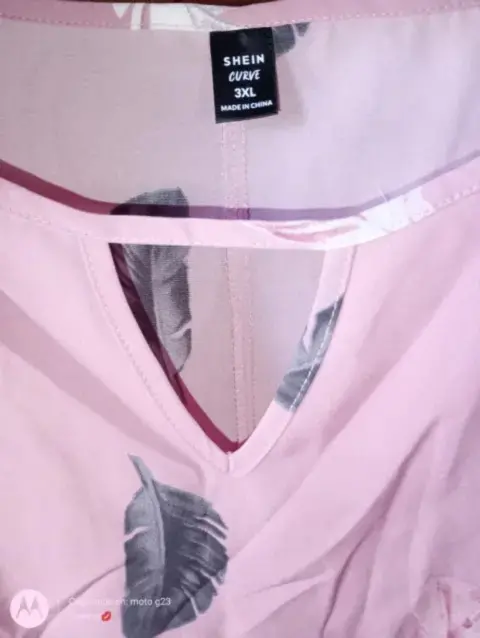 Blusa rosa estampado de plumas, marca SheIn, nueva, T-3XL, tela muy fresca. Se ve super bonita 😍