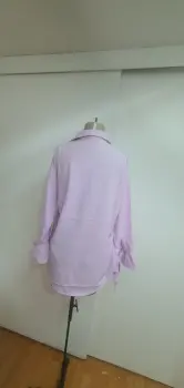 Blusa rosa, super amplia y ligera, con mangas 3/4. Tiene ornamentos en las mismas.