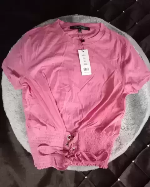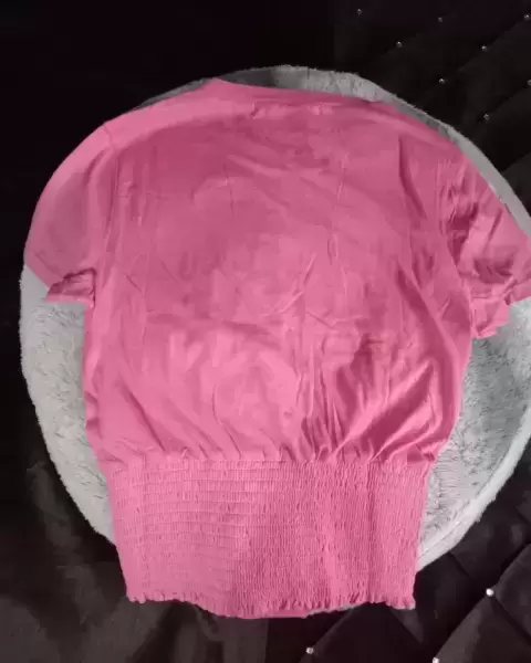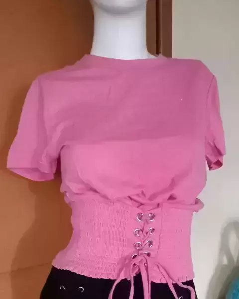 Blusa color rosa , tela algodon , Talla S, Tambien disponible en Mediana, efecto acordeon parte de la cintura alta , se agusta ya que trae cintas y ojillos para ajustarla 😘
