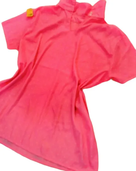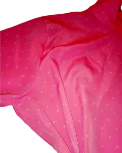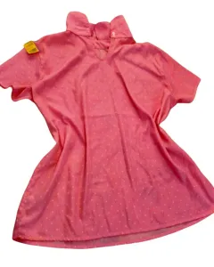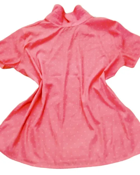 Linda blusa de algodón, fresca y suave. Es rosa muy vivo con mini bolitas blancas. Tiene un bonito detalle en el cuello y manga cortita. El corte es cuadrado, con cinto también luce bien. Es muy femenina y tierna, es talla S pero está muy amplia, como mediana.