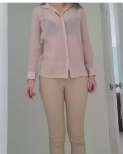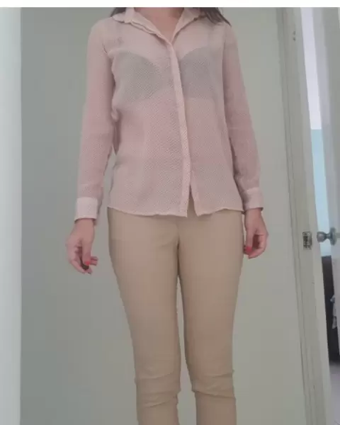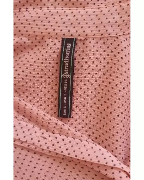 Blusa de tela fresca, transparente., rosa con puntitos negros . Es talla S pero viene muy amplia . No tiene ningun detalle . La parte de atras es un poco mas larga que adelante