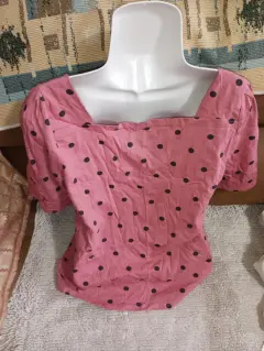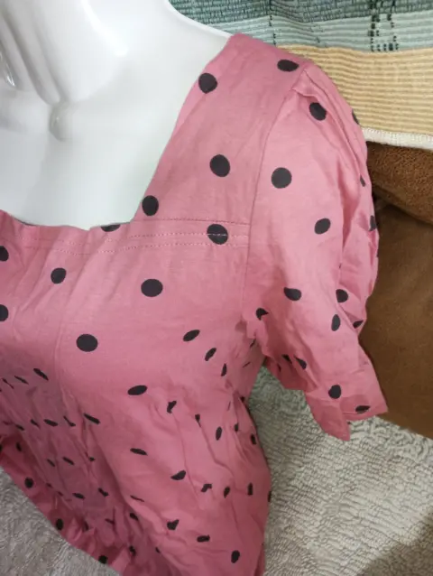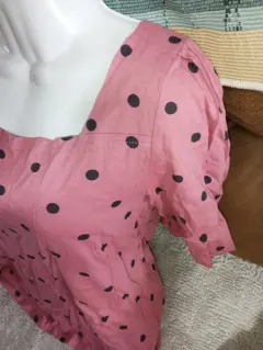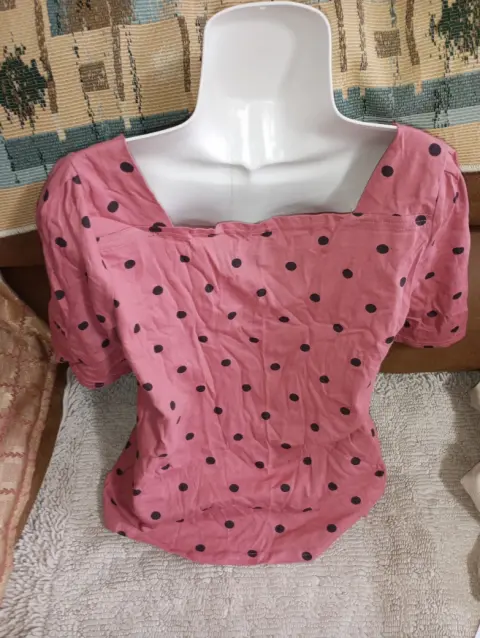 Bonita blusa dots, color rosa, cuello cuadrado, con mangas un poco abullonadas, tela que estira un poco, aunque muy fresca, marcada como XG pero llega incluso a XXG ❤️❤️❤️❤️❤️