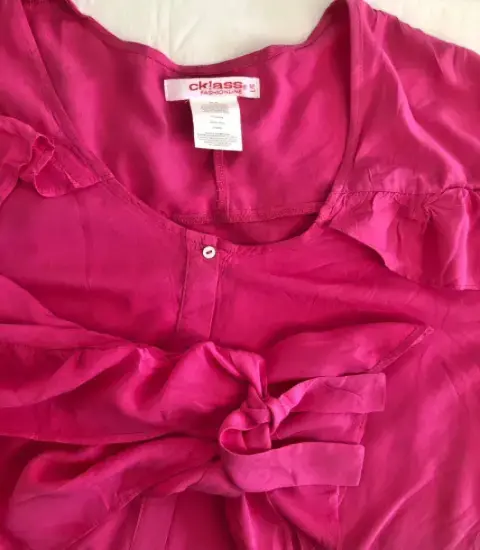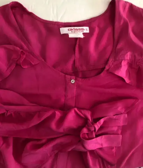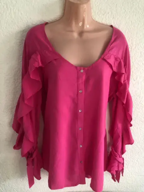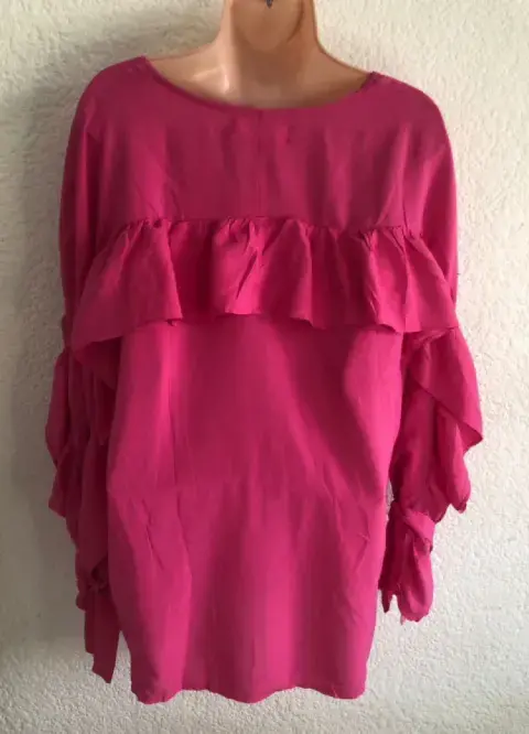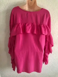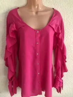 Blusa rosa mexicano, manga larga y holanes en la manga, botones al frente muy linda y cómoda, cuello redondo ideal para la temporada de primavera verano.