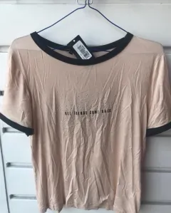Blusa Rosa Nude con negro. Tallas Ch y GSúper linda, Strech, Fresca