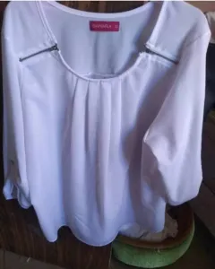 Blusa Sahara blancaManga 3/4Cierres en las mangasEscote redondo