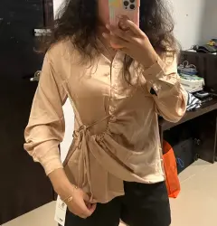 Blusa satin MOFT shein. Hermosa blusa nueva moft santon con diseño, color dorada súper suave tela de buena calidad como las de Zara talla S