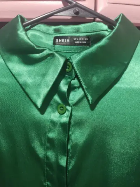 Blusa satin verde. Blusa manga larga, de satin, verde, shein talla M, en muy buen estado