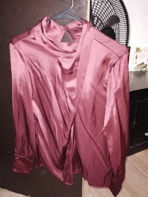 Blusa satinada color vino , detalle en cuello y botones en mangas ,elegante y nueva sin etiqueta !!!