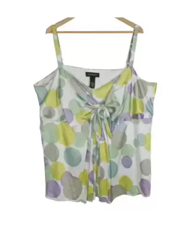 Blusa satinada de bolas de colores Talla XXL. Blusa satinada tirantes con motas colores, Talla XXL, tiene moño en el escote, tiene forro y cierre invisible al costado, súper fresca ideal para primavera verano. Súper linda