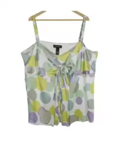Blusa satinada tirantes con motas colores, Talla XXL, tiene moño en el escote, tiene forro y cierre invisible al costado, súper fresca ideal para primavera verano. Súper linda
