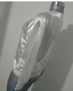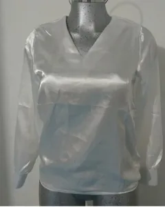 Blusa manga larga cuello v tela satín talla mediana ,botones en las mangas a los costados