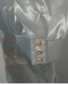 Blusa satinada manga larga. Blusa manga larga cuello v tela satín talla mediana ,botones en las mangas a los costados