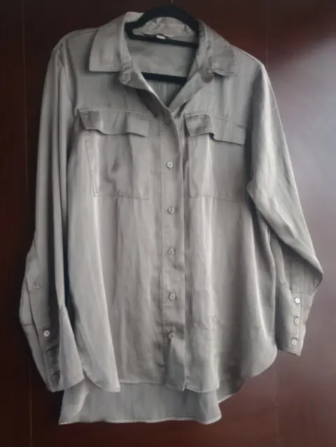 Blusa satinada stradivarius. Hermosa blusa satinada verde -gris está tan fresca, tan ligera ... Simplemente está hermosa !!!