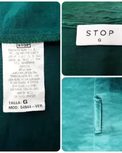 Hermosa blusa verde botella marca stop en talla L tiene presillas a los costados como para poner cordon o liston para ajustar no cuenta con dicha pieza sin detalles MEDIDAS ziza a ziza 55cm largo 61cm ligeramente mas larga de atras no estira tambien queda a talla M
