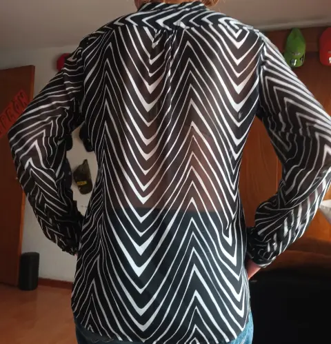 Blusa semitransparente negra con blanco. Hermosa blusa seminueva TM (amplia) usada sólo dos veces, en perfectas condiciones, ideal para vestir formalmente o casual.