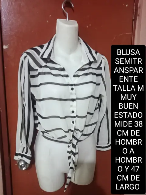BLUSA SEMITRANSPARENTE TALLA M SOLO SE USO UNA VEZ EN PERFECTO ESTADO MIDE 38 CM DE HOMBRO A HOMBRO